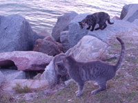 I spent 2 weeks in Miami for work and discovered a pretty large cat colony on the rock pier at the south end of Miami Beach (I also met 3 cats on the street, the one I’m holding is obviously someone’s condo cat). These cats are SUPER feral and really living it up on dead fish and cans of cat food left out by the locals.