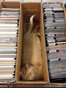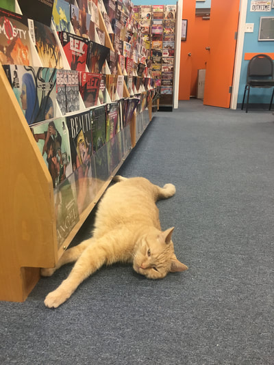 Winston (Cat 50), the Carol & John’s Comic Shop store cat. It’s always a pleasure to see him when I’m picking up my books. He’s pretty chill and super photogenic but doesn’t like to be pet too much.